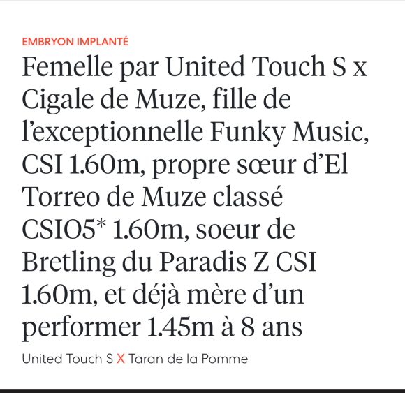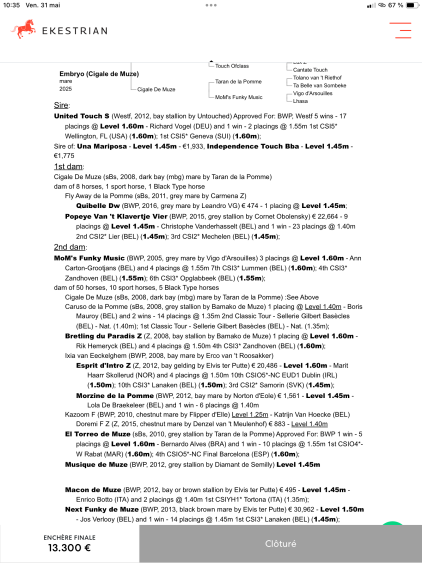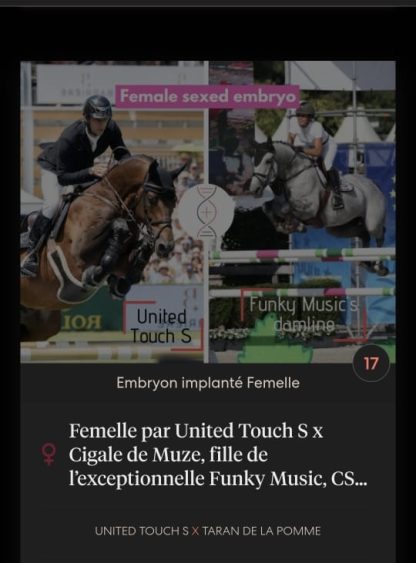 Ultra Touch YPDM Z , pouliche par l’exceptionnel étalon United Touch S et Cigale de Muze , fille de la jument 1M60 Funky Music