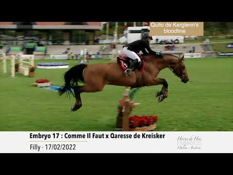 Embryon femelle par Comme il faut et Qaresse de Kreisker, jument 1m45, fille de Diamant de Semilly, naissance prévue février 2022. Embryon situé aux Pays Bas.